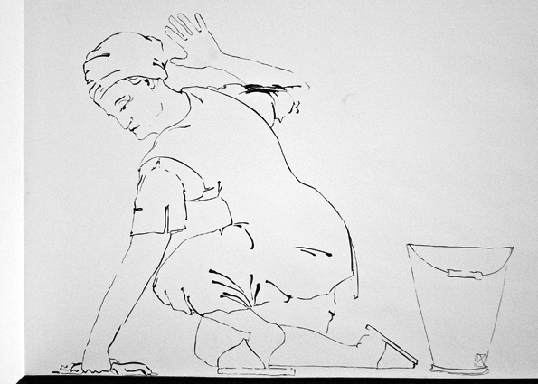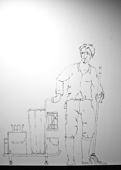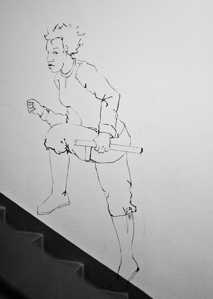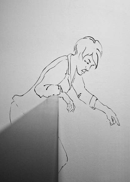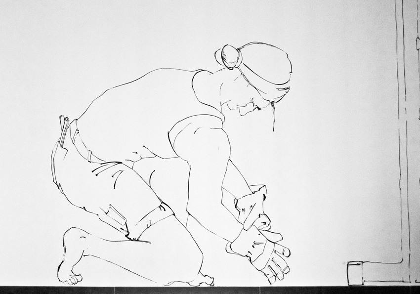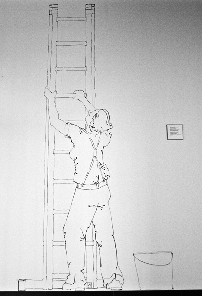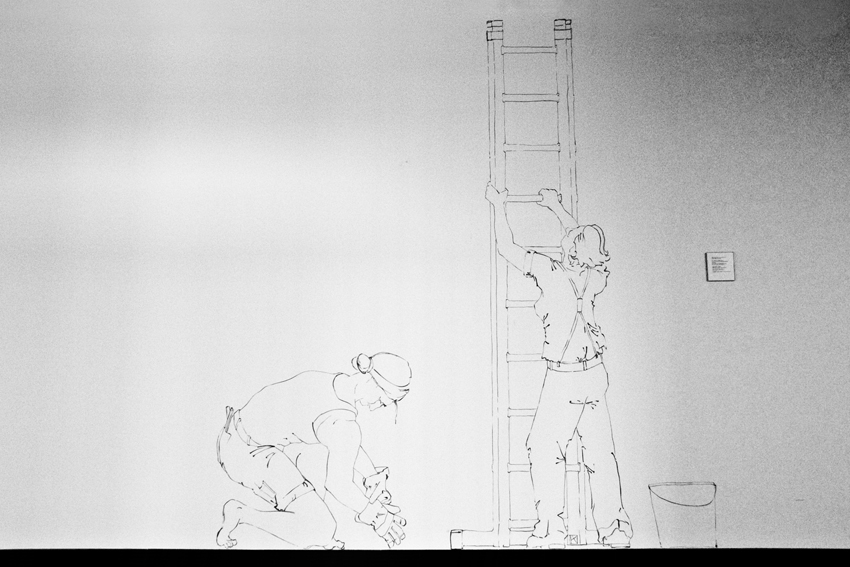 Bildhauerei Druckgraphik Photographie Zeichnung Dare you Arbeiter Film Performance Maria lädt zum Lande „Arbeiter“ acht lebensgrosse Wandzeichnungen, Tusche ca 1-2,5 x 2 m 2008